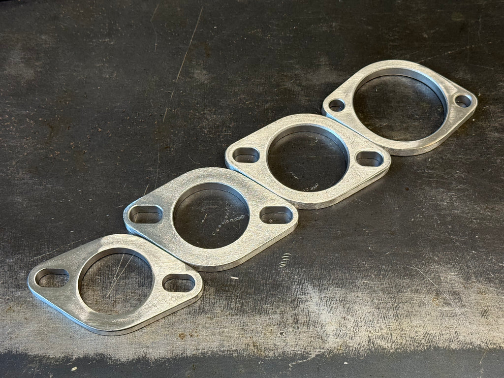 A simple 3/8" thickness 304 stainless steel two bolt exhaust flange. Will come deburred, cleaned, and ready to weld!
